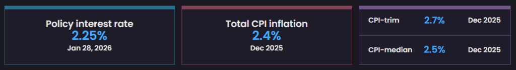 - Growth: The Bank projects modest GDP growth of 1.1% for 2026, as the economy adjusts to trade pressures.