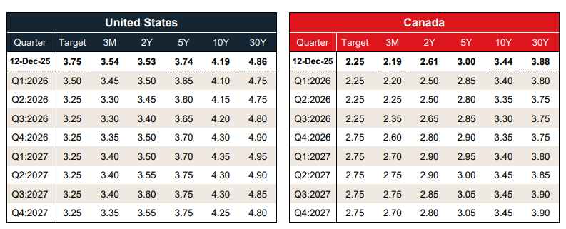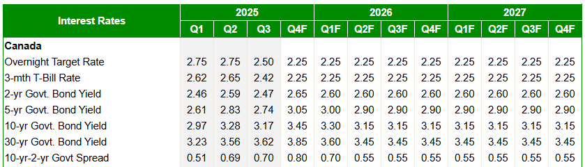 National Bank of Canada expects the Bank of Canada to start increasing interest rates in the fall of 2026. While they see the Bank remaining on hold for the first half of the year at 2.25%, their macro outlook is consistent with rate hikes beginning in Q4 2026. This forecast is driven by an “impressive pace of job growth” and the belief that the worst of the economic slowdown is over, shifting the Bank’s focus from easing to tightening.